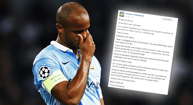 แวงซองต์ กอมปานี แนวรับกัปตันทีมชาติเบลเยียม และแมนเชสเตอร์ ซิตี้ เผยผ่านบัญชีเฟซบุคส่วนตัวว่า ไม่สามารถหายจากอาการบาดเจ็บให้ทันการแข่งขันฟุตบอลชิงแชมป์แห่งชาติยุโรป (ยูโร 2016) ได้อย่างแน่นอนแล้ว