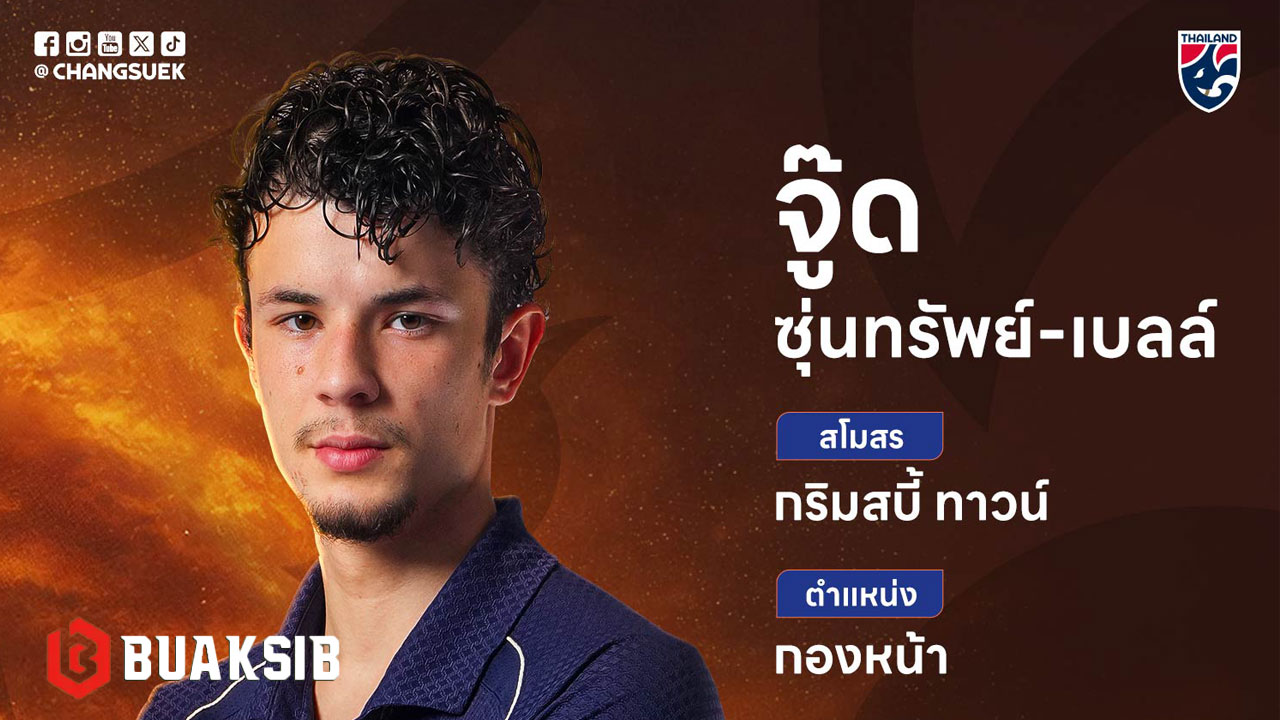 จู๊ด ซุ่นทรัพย์ เบลล์ แนวรุกลูกครึ่งของ “ทีมชาติไทย” ที่ปัจจุบันค้าแข้งอยู่ลีกดังแดนยุโรป “กริมสบี้ ทาวน์” ถูกเรียกมาช่วยทีมชาติไทย เพื่อลุยเอเชียน คัพ 2027 รอบคัดเลือก ศึกชี้ชะตาที่จะถึงนี้