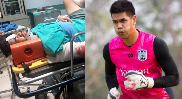 ณัฐพงษ์ ขจรมาลี ผู้รักษาประตูชัยนาท ประสบอุบัติเหตุขับรถเก๋งไปชนท้ายรถ 6 ล้อ ถูกอัดก๊อบปี้ติดอยู่ภายในรถ