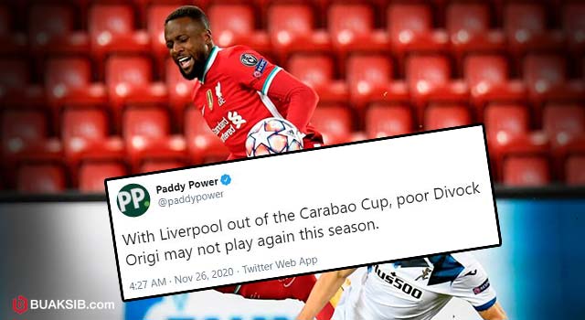 แพดดี้ เพาเวอร์ ร้านพูลตัวแสบทวิตแซวว่า “จากการที่ ลิเวอร์พูล ตกรอบคาราบาว คัพ ไปแล้ว ดิว็อค โอริกี ผู้น่าสงสารอาจไม่ได้เล่นอีกในซีซั่นนี้”