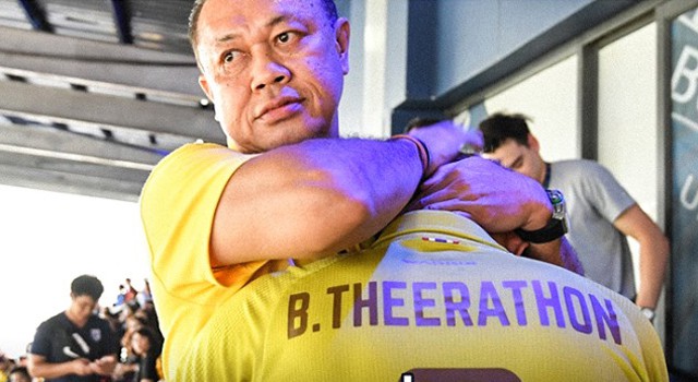 หลังเกม “เจ้าอุ้ม” ธีราทร บุญมาทัน อดีตแบ็กซ้ายบุรีรัมย์ ยูไนเต็ด จาก โยโกฮามา เอฟ มารินอส ทีมในศึกเจลีกวัน โผเข้ากอด เนวิน ชิดชอบ ประธานสโมสรบุรีรัมย์ ยูไนเต็ด และ “ซ้อต่าย” กรุณา ชิดชอบ หลังจบศึกฟุตบอลชิงถ้วยพระราชทาน คิงส์ คัพ ครั้งที่ 47 ที่จัดขึ้นที่สนามช้างอาริน่า จังหวัดบุรีรัมย์