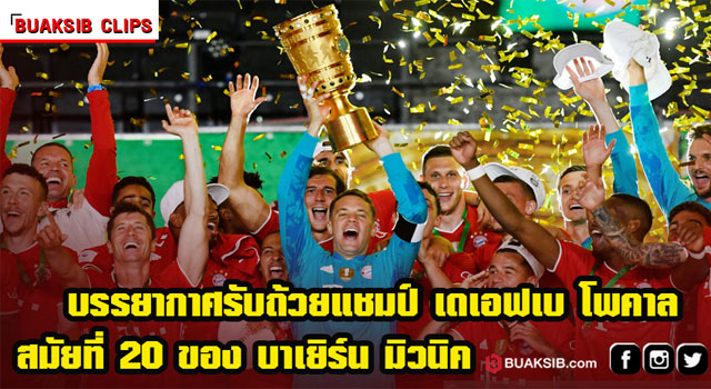 แหล่งที่มาของภาพ: บรรยากาศรับถ้วยแชมป์ เดเอฟเบ โพคาล สมัยที่ 20 ของ บาเยิร์น มิวนิค