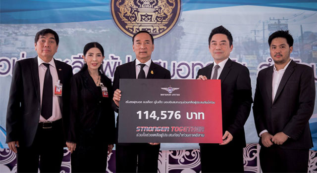 บิ๊กขจร ประธาน แบงค็อก มอบเงินจากการประมูลเสื้อ “Stronger Together” มอบให้กับโครงการ “ประชารัฐร่วมใจ ใต้ร่มพระบารมี” ช่วยน้ำท่วมภาคอีสาน