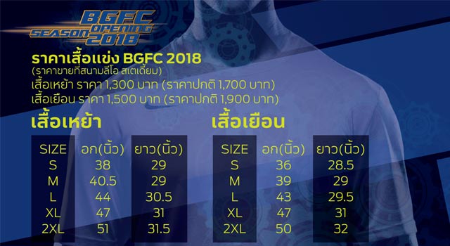 สโมสรฟุตบอลบางกอกกล๊าส เอฟซี แจ้งรายละเอียดการขายเสื้อแข่ง2018 และขั้นตอนการจองเสื้อของสมาชิกตั๋วปี ในวันงาน BGFC Season Opening 2018 วันเสาร์ที่ 6 ม.ค. 61