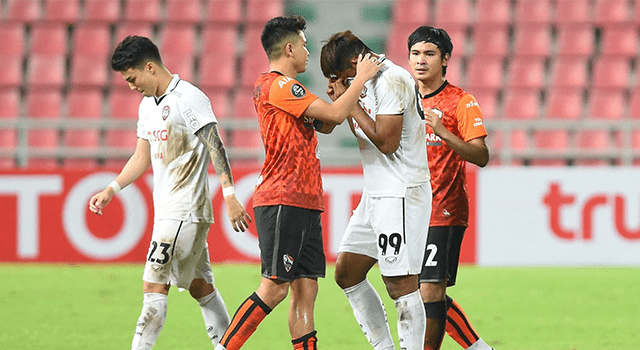 เจ้านิวส์ ฐิติพันธ์ พ่วงจันทร์ เดินเข้าไปปลอบปีโป้ สิโรจน์ ฉัตรทอง แนวรุกร่างยักษ์แห่ง “กิเลนผยอง” เอสซีจี เมืองทอง ยูไนเต็ด หลังพลาดจุดโทษ ก่อนที่ เชียงราย ยูไนเต็ด จะเอาชนะจุดโทษเมืองทอง ยูไนเต็ด ไปได้ด้วยสกอร์รวม 6-5
