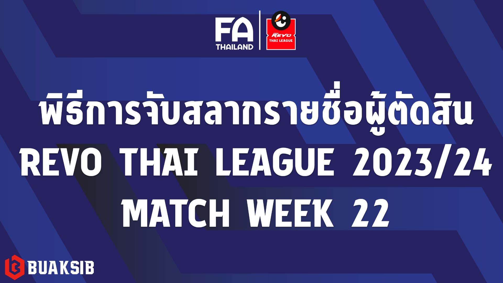 สมาคมฯ ประกาศ รายชื่อ “ผู้ตัดสิน” ปฏิบัติหน้าที่ในการแข่งขันฟุตบอล รีโว่ ไทยลีก ฤดูกาล 2023/24 แมตช์เดย์ที่ 22