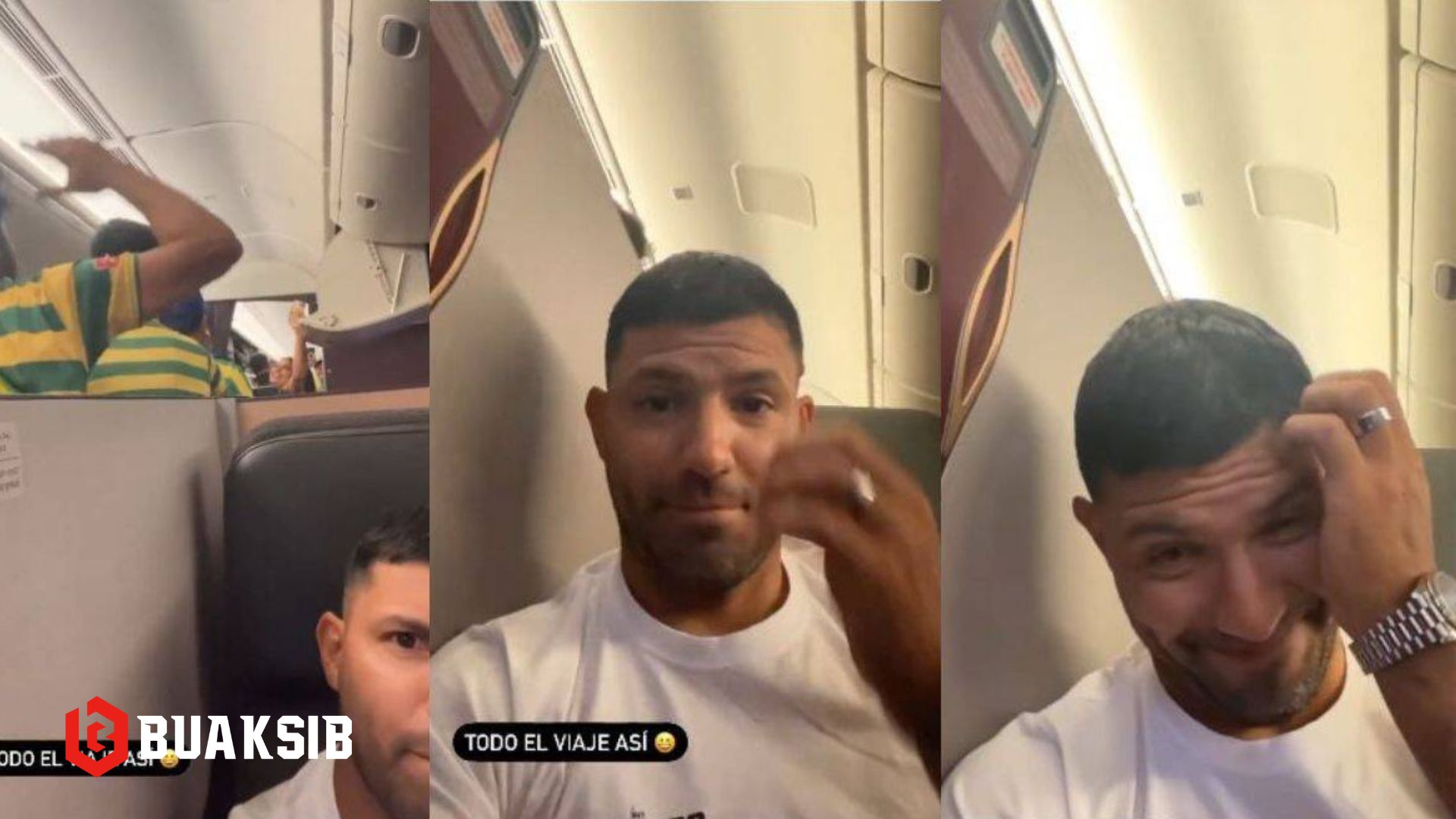 เซร์คิโอ อเกวโร่ ถึงกับทำหน้าเซ็ง หลังนั่งเครื่องบินลำเดียวกับแฟนบอลบราซิล ที่เชียร์สนั่นเครื่อง