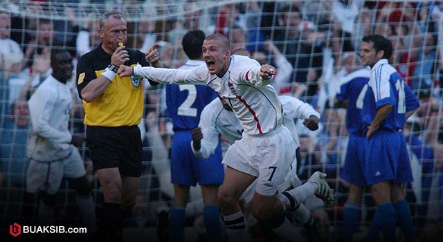 วันที่ 6 ตุลาคม 2001 เกมนัดสุดท้ายในรอบคัดเลือก ทีมชาติอังกฤษลงเล่นในโอลด์ แทร็ฟฟอร์ด เพื่อต้อนรับการเยือนของกรีซ แม้ชื่อชั้นจะเป็นรองแถมไม่ได้ลุ้นที่จะเข้ารอบ แต่นักเตะกรีซก็ทำแสบเมื่อ อันเกลอส ชาริติอาสยิงให้กรีซ นำไปก่อนในครึ่งแรก มันทำให้นักเตะอังกฤษยิ่งกดดันจนทำให้กว่าจะตามตีเสมอได้ก็ต้องรอถึงครึ่งหลังในนาทีที่ 68 จาก เท็ดดี้ เชอริ่งแฮม แต่หลังจากนั้นอีกนาทีเดียว เดมิส นิโคไลดิส ก็ยิงให้กรีซนำเป็น 2-1 อีกครั้ง ประตูนั้นเหมือนช็อคนักเตะอังกฤษไปเลยในตัว แถม อันโตนิโอ นิโคโปลิดิส นายด่านกรีซก็ฟอร์มหนึบอย่างมาก กระทั่งนาทีช่วงทดเวลาบาดเจ็บนาทีที่ 3 อังกฤษก็มาได้ลูกฟรีคิ๊กระยะ 30 หลา แล้ว เดวิด เบ็คแฮมกัปตันทีมก็บรรจงปั่นฟรีคิ๊กเสียบตาข่ายเข้าไปเป็น 2-2 ในขณะเดียวกันเยอรมันก็ทำได้แค่เสมอฟินแลนด์จึงทำให้อังกฤษคว้าสิทธิไปเล่นฟุตบอลโลก 2002 ได้สมใจ