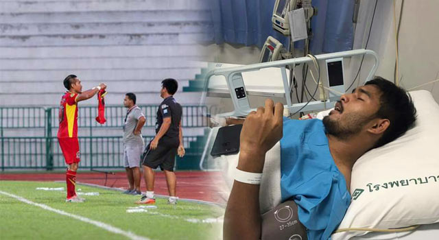 สุดซึ้ง กฤตณภพ เมฆพัชรกุล กองหลัง อาร์มี่ ยูไนเต็ด ชูเสื้อหมายเลข 18 ของ องอาจ ภมรประเสริฐ เพื่อนร่วมทีมที่กำลังป่วยและต้องเข้ารับการผ่าตัดใหญ่