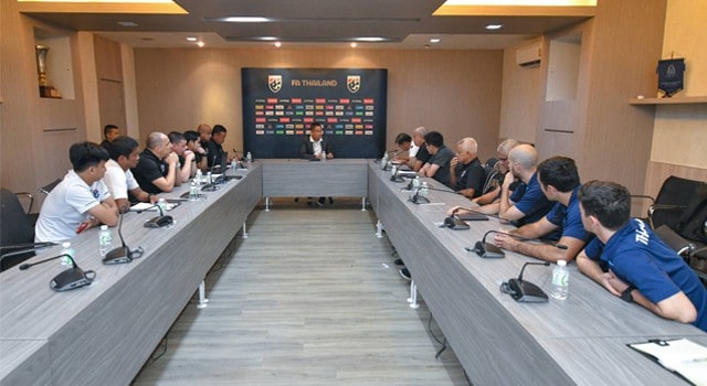 การประชุมในครั้งนี้นำโดย พล.ต.อ. ดร. สมยศ พุ่มพันธุ์ม่วง นายกสมาคมฯ พร้อมด้วย วิทยา เลาหกุล อุปนายกฝ่ายพัฒนาเทคนิค, ศิริศักดิ์ ยอดญาติไทย หัวหน้าผู้ฝึกสอนทีมชาติไทย ชุดใหญ่, โชคทวี พรหมรัตน์ ผู้ช่วยผู้ฝึกสอนทีมชาติไทย ชุดใหญ่ และทีมงานสตาฟฟ์โค้ชอย่าง เนบอยซา สตาเมนโควิช ฟิตเนสเทรนเนอร์และ ซาซ่า โทดิช โค้ชผู้รักษาประตู