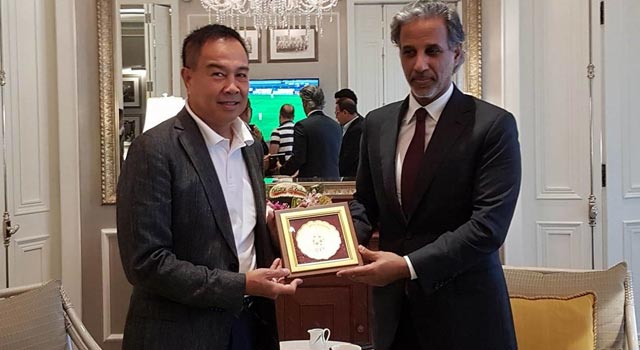 วันที่ 29 พฤศจิกายน 2560 สมาคมกีฬาฟุตบอลแห่งประเทศไทยฯ นำโดย พล.ต.อ. สมยศ พุ่มพันธ์ม่วง นายกสมาคมฯ และ พาทิศ ศุภะพงษ์ รองเลขาธิการฝ่ายต่างประเทศและโฆษกสมาคมฯ พร้อมด้วยสมาคมฟุตบอลกาตาร์ นำโดย ฮาหมัด บิน คาลิฟา อัล-ธานี นายกสมาคมฯ ได้เริ่มพูดคุยเบื้องต้นถึงหัวข้อการแลกเปลี่ยนความร่วมมือระหว่างกัน ณ โรงแรมแมนดาริน เมื่อช่วงเช้าที่ผ่านมา