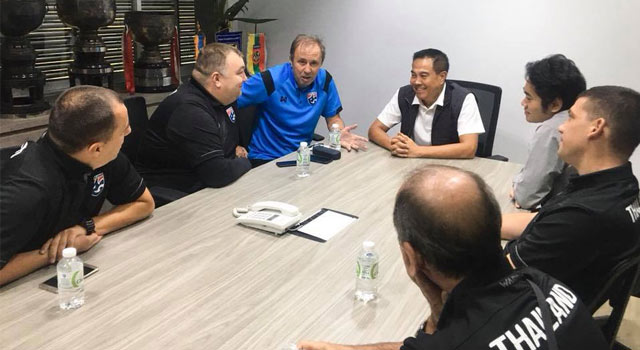 การประชุมครั้งนี้นำโดย พล.ต.อ. ดร. สมยศ พุ่มพันธุ์ม่วง นายกสมาคมฯ พร้อมด้วย คุณ พาทิศ ศุภะพงษ์ รองเลขาธิการฝ่ายต่างประเทศและโฆษกสมาคมฯ, มิโลวาน ราเยวัช หัวหน้าผู้ฝึกสอนทีมชาติไทย และทีมงานสตาฟฟ์โค้ช