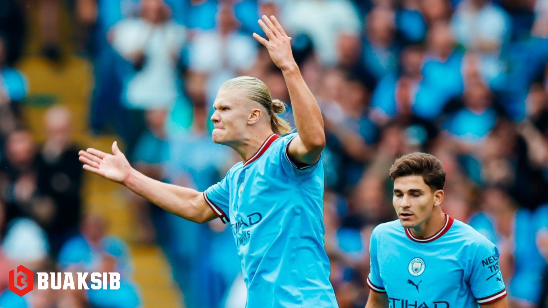 นาที 81 อิลกาย กุนโดกัน จ่ายยัดให้ เออร์ลิง เบราท์ ฮาลันด์ ก่อนกดด้วยซ้ายเข้าไปเป็แฮตทริกและช่วยให้ แมนซิตี้ หนีเป็น 4-2