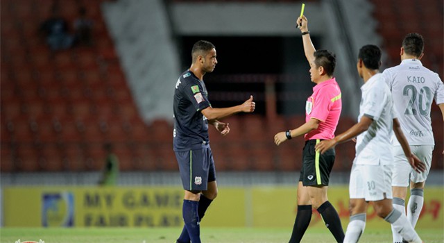 “ตอน เดลลาทอเร่ กับนฤบดินทร์ มันไม่ฟาวล์หรอกครับ แต่ผมแจกเพราะจังหวะก่อนหน้า ผมจำไม่ได้ว่าเขาตามไปเตะใคร ซึ่งมันต้องเป็นใบเหลืองแน่นอน พอเกมหยุดผมถึงได้ให้เหลืองย้อนหลัง แต่ผมยอมรับว่าจำผิดไปว่าให้เหลืองเขาไปแล้ว นึกว่าเป็นคนอื่น ข้างสนามก็ตะโกนบอกผมว่าต้องเป็นเหลืองแดง ซึ่งพอชูใบเหลืองขึ้นมาแล้วจะชักกลับก็ไมได้ ทีมตรงข้ามก็จะด่าผมอีก จังหวะนั้นถ้าผมไม่จำผิด ผมจะเข้าไปเตือนหนักๆ เท่านั้น แต่ถ้าถามว่าให้ใบเหลืองได้มั้ย ก็ต้องตอบว่าให้ได้แน่นอน”