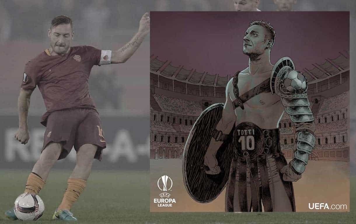 ยูฟ่า เผยภาพวาดผ่านสื่ออนไลน์ ฉลอง ฟรานเชสโก้ ต็อตติ เจ้าชายแห่ง หมาป่า เอเอส โรม่า ที่ลงเล่นเกมยุโรป ครบ 100 นัด เมื่อคืนนี้ เพื่อเป็นเกียรติคุณงามความดี พร้อมยกย่องให้เป็นดั่งนักรบโรมันผู้กล้า หลังเกมเสมอ ออสเตรีย เวียนนา 3-3 เมื่อคืนที่ผ่านมา และเขาคว้า แมน ออฟ เดอะ แมตช์
