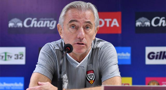 การแถลงข่าวครั้งนี้นำโดย เบิร์ต ฟาน มาร์ไวจ์ หัวหน้าผู้ฝึกสอนทีมชาติสหรัฐอาหรับเอมิเรตส์ พร้อมด้วย คอลิฟา อัล ฮามาดี้ กองหลังของทีม ในงานแถลงข่าว เบิร์ต ฟาน มาร์ไวจ์ หัวหน้าผู้ฝึกสอน ทีมชาติสหรัฐอาหรับเอมิเรตส์ กล่าวว่า