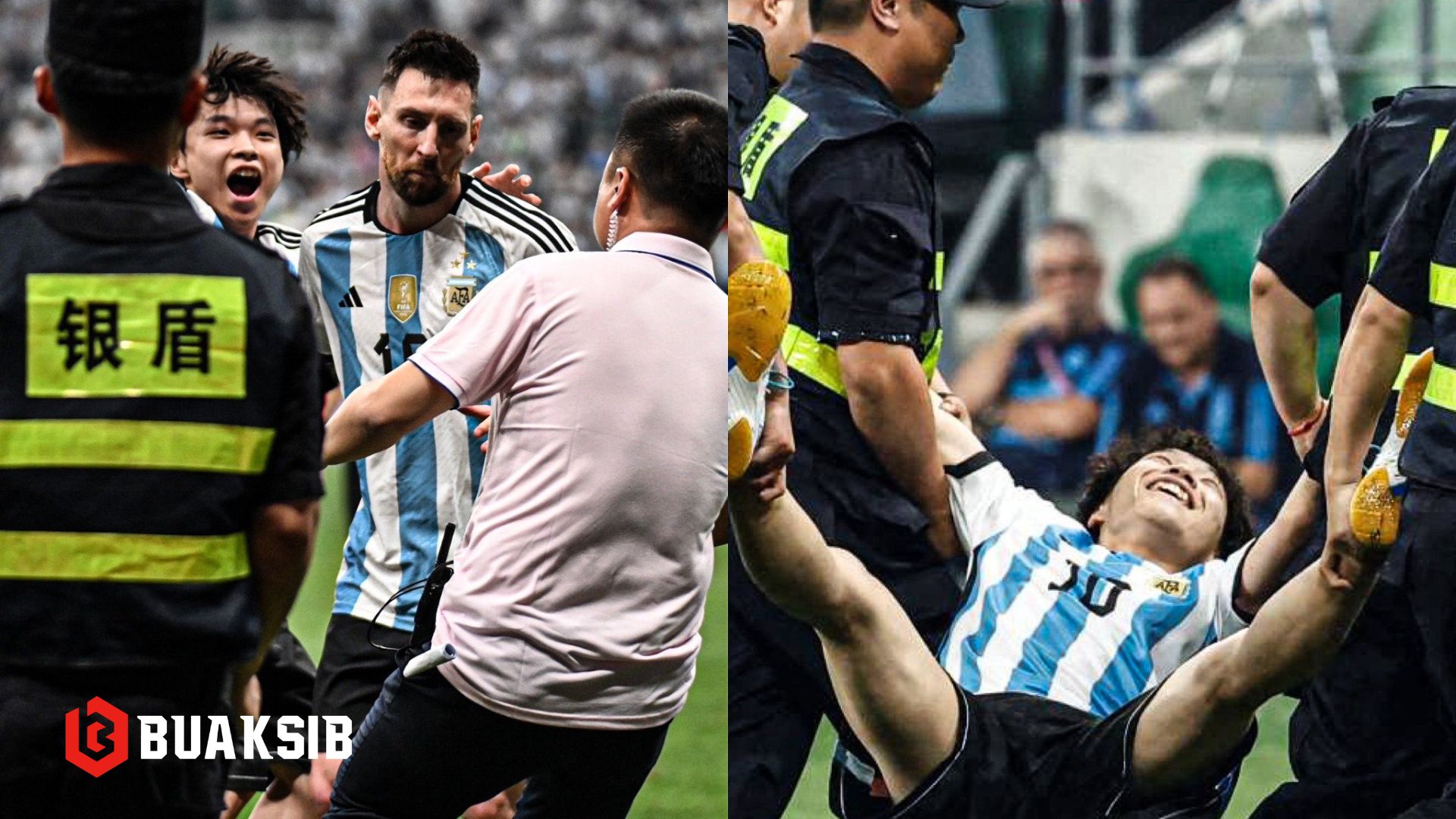 แฟนบอลจีนคลั่งสุด บุกลงไปในสนามเพื่อกอด ลิโอเนล เมสซี่ พร้อมบอกว่าที่เขาทำแบบนี้ชี้ให้เห็นถึงความหละหลวมของการ์ด