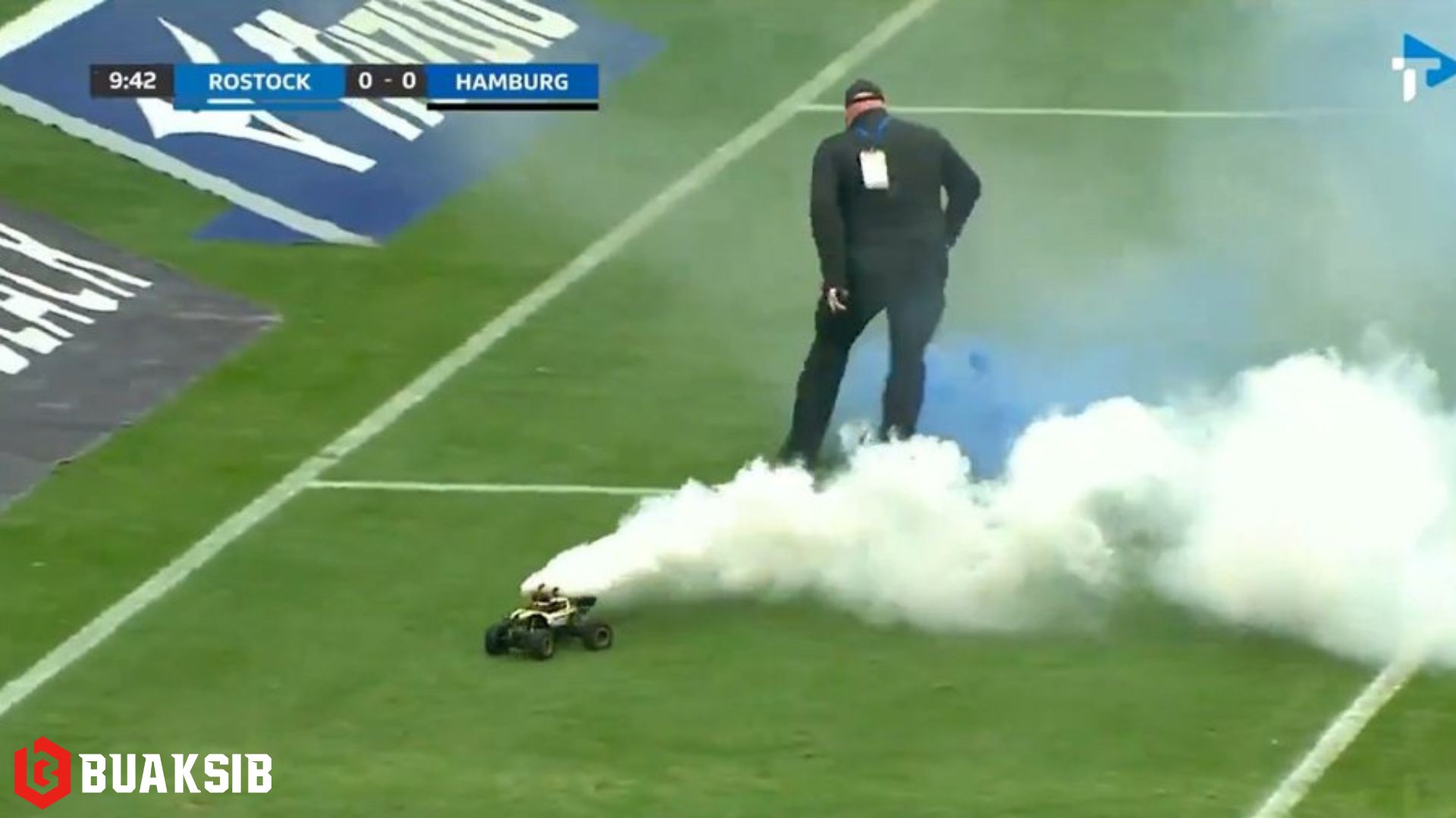 แฟนบอล จอมแสบ ได้จัดการปล่อย รถบังคับ ที่ติดระเบิดควัน ลงไปในสนามของ เกม ลีกา 2 เยอรมัน จนทำให้เกมการแข่งขันต้องหยุดชะงัก