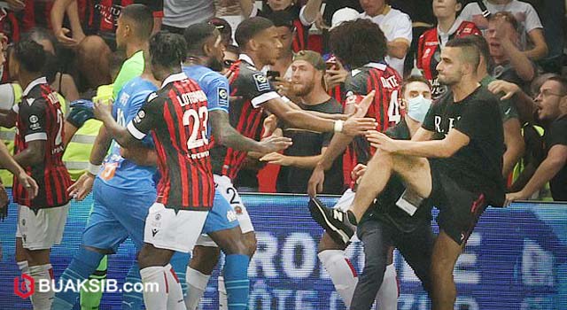 การแข่งขันระหว่าง นีซ และ โอลิมปิก มาร์กเซย เมื่อคืนวันอาทิตย์ ต้องถูกยกเลิก หลังจากแฟนบอลปาขวดใส่นักเตะในสนาม ก่อนเหตุการณ์บานปลายเป็นการตะลุมบอนระหว่างนักเตะทั้งสองฝ่าย, แฟนบอล และเจ้าหน้าที่ของทีม