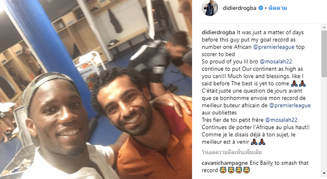 อดีตตำนานกองหน้า “สิงห์บูล” เชลซี อย่าง ดิดิเย่ร์ ดร็อกบา ออกมายกย่อง โมฮัมเหม็ด ซาล่าห์ ปีกของ “หงส์แดง” ลิเวอร์พูล หลังทำลายสถิติของเขา